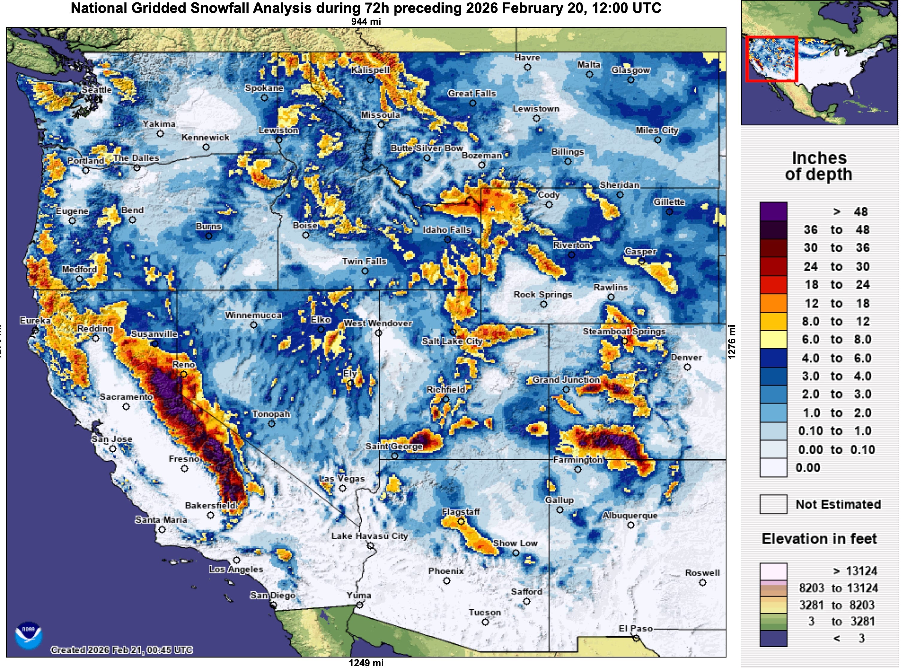 The map below shows that the same storm that led to the Sierra Nevada avalanche disaster also delivered deep accumulations to our neck of the woods.